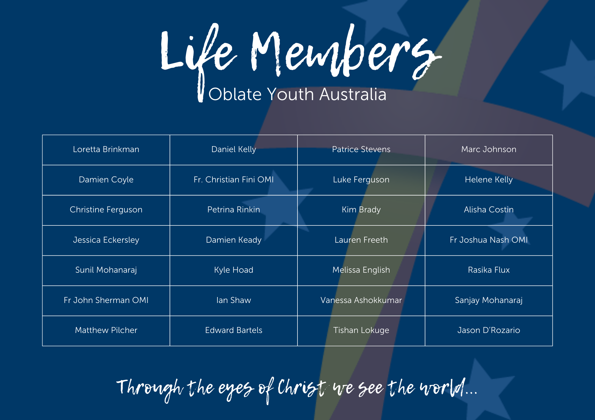 A Life Member requires nomination by a member of Oblate Youth Australia, and seconded by a different member; and must be accepted by the National Coordination team.